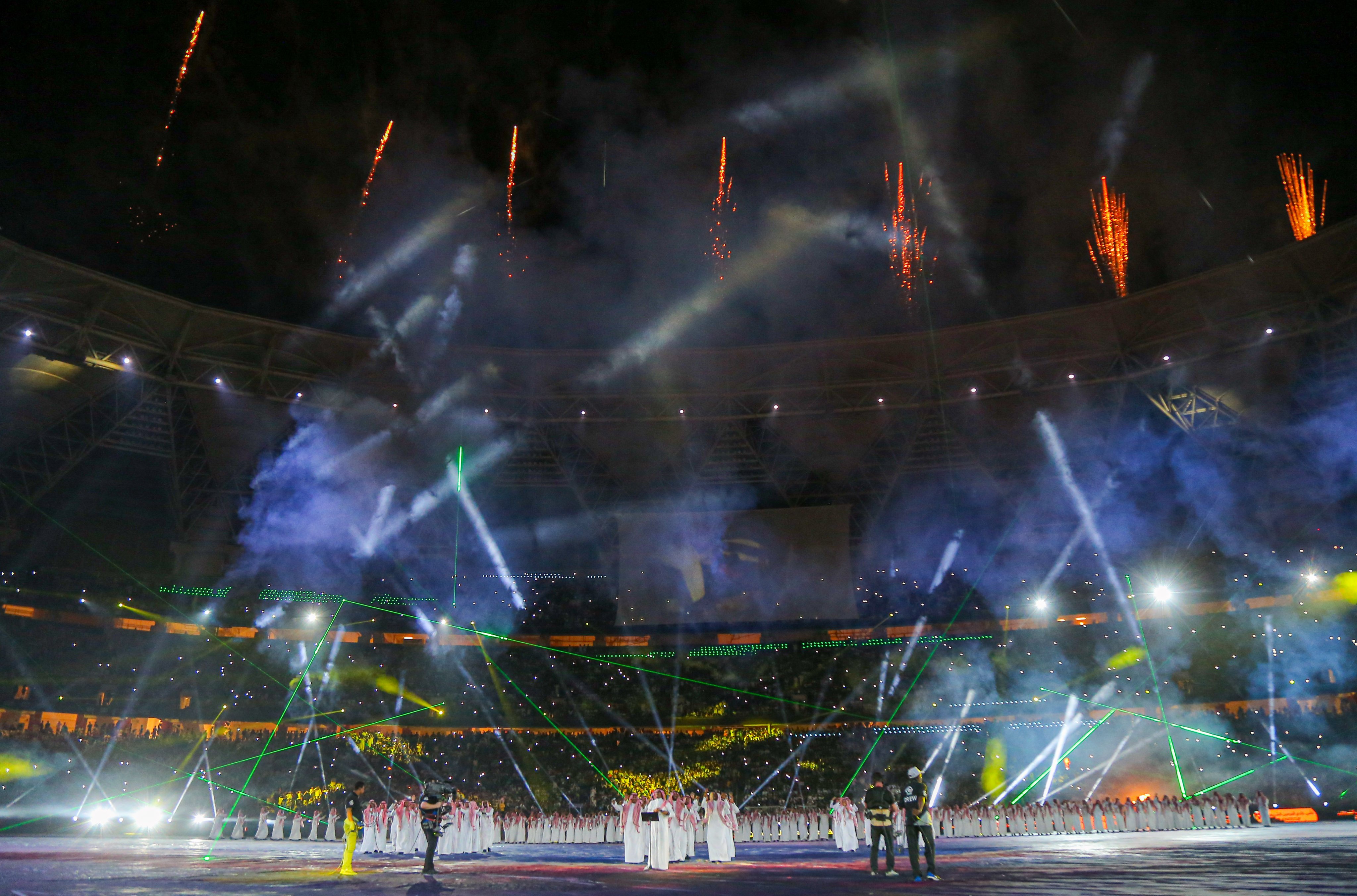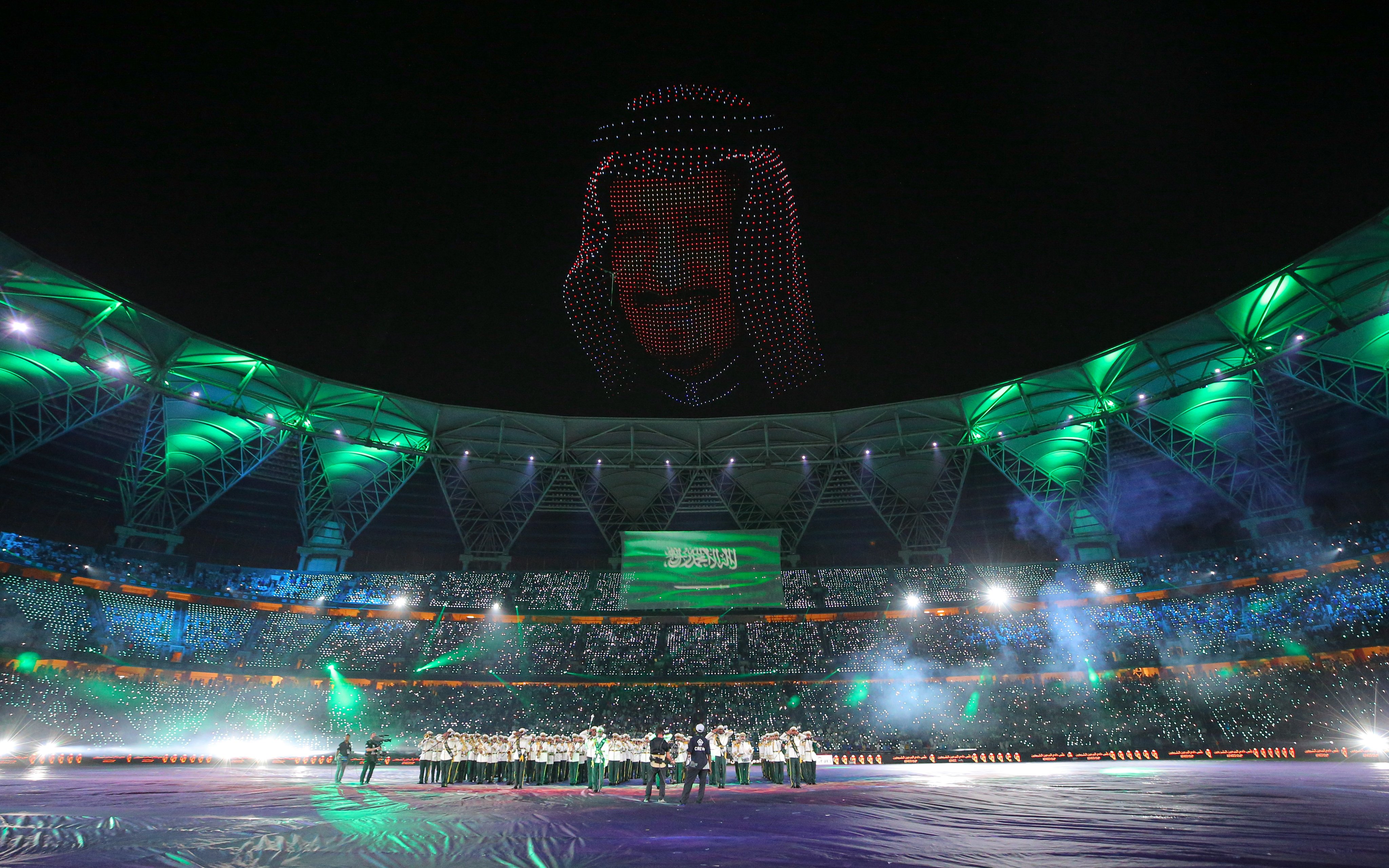 전통에 따라 하프타임에 경기장을 찾은 무함마드 빈 살만 왕세자 환영 공연에서는 드론쇼까지 선보였습니다.