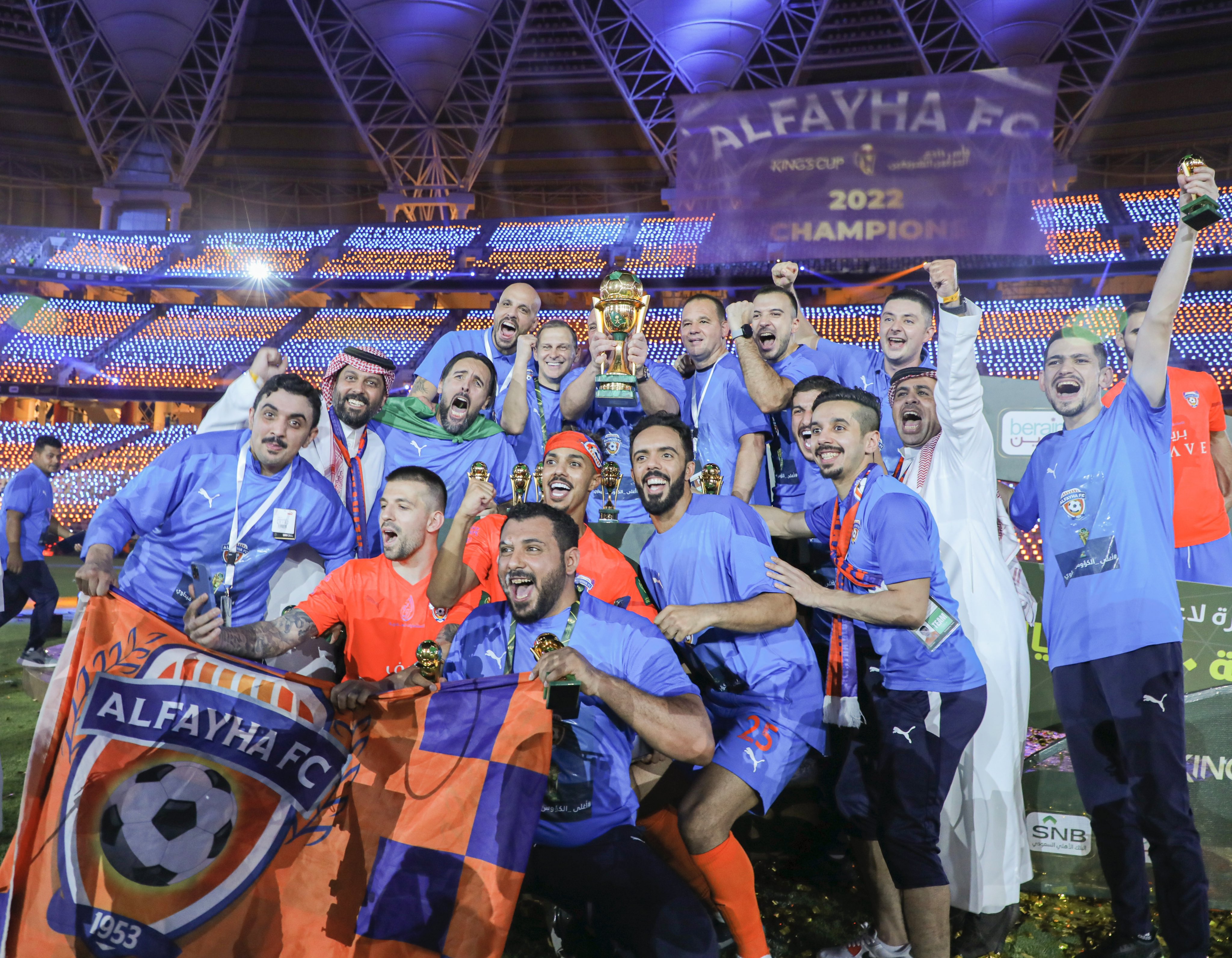 10) 국왕컵 직전까지 알파이하의 최고 성적은 16/17시즌 2부 리그 우승이었습니다. 하부 리그를 전전하던 알파이하는 창단 60주년을 맞이했던 13/14시즌에 3부 리그 우승을 차지하며 2부 리그에 승격되었고, 2부 리그에서 세 시즌을 보낸 16/17시즌 역대 최고 성적이었던 2부 리그 우승을 차지하며 17/18시즌에 처음으로 1부 리그에 진출했다가 세 시즌만인 19/20시즌에 2부 리그로 강등되었다가 20/21시즌에서 준우승을 차지하며 한 시즌만에 복귀한 이번 시즌 승격팀입니다. 승격한 알파이하를 맡은 부크 라쇼비치 감독은 만 38세의 전 세르비아 국대 골키퍼 블라디미르 스토이코비치를 영입하여 튼튼한 수비진을 구축한 것이 신의 한 수가 되었습니다. 공격력이 빈약해서 상위권까지 치고 올라갈 수는 없었지만, 리그 최소 실점을 자랑하는 짠물수비로 중위권을 유지해 다음 시즌 잔류를 이미 확정지었으며, 이 짠물 수비진의 끈끈한 수비와 블라디미르 스토이코비치 골키퍼의 선방쇼에 힘입어 4강전과 결승전에서 이번 시즌 우승에 도전하는 알잇티하드와 알힐랄을 잇달아 꺾는 이변을 이어가며 새 역사를 쓰게 되었습니다.