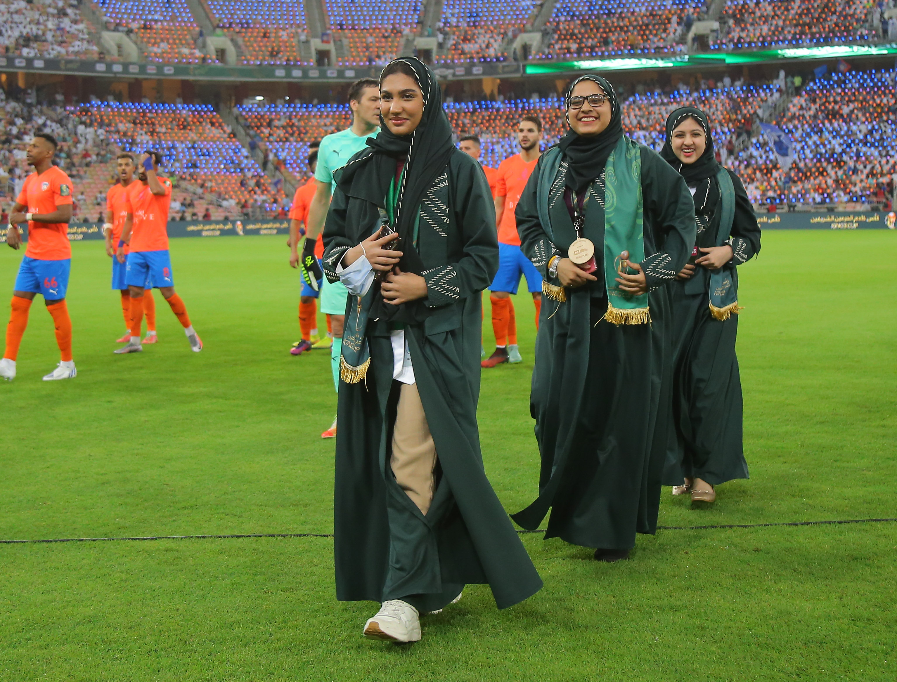 7) 알힐랄과 알파이하 선수들은 경기 시작 전 지난 주 미국 조지아 애틀랜타에서 폐막한 2022 국제과학기술경진대회 (ISEF 2022)에서 우수한 성적을 거둔 남녀학생들을 초대하는 자리를 마련했습니다. 무려 22개의 메달을 수상했다고 하죠.
