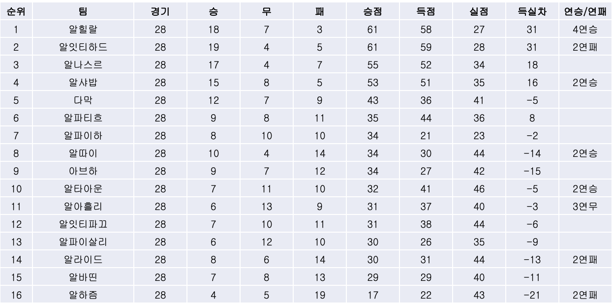 2. 리그 순위
