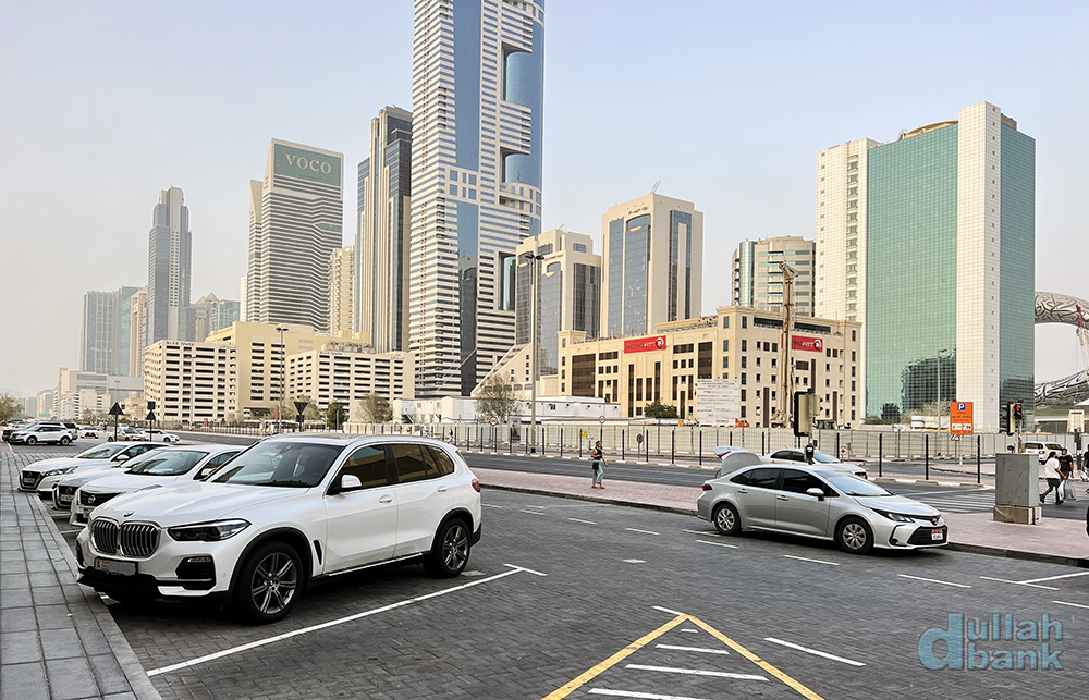 건물 앞에 바로 공영 유료 주차장에 차를 주차시킬 수 있습니다. 식사시간 두 시간에 여유시간 포함해서 3시간 주차시키면 주차비는 12디르함 (일요일은 무료) 셰이크 자이드 로드의 스카이 라인을 다른 각도에서 볼 수 있고, 미래 박물관도 보입니다.