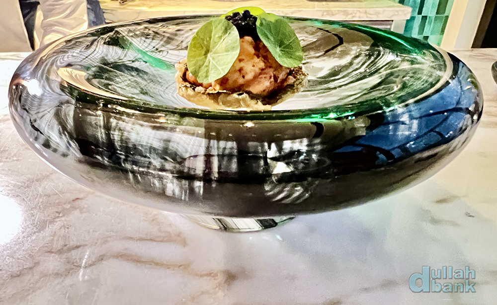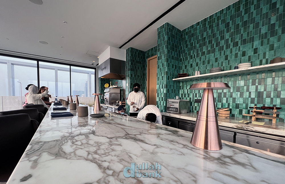 제가 먹었던 시간대에는 6명의 이마라티 여성 그룹과 이탈리아 커플 1쌍, 그리고 저까지 9명이 식사를 함께 했습니다. 셰프가 자신이 어떤 과정을 거쳐 일식 셰프가 되었는지 이야기를 하는데, 일식집이 많은 두바이에서 자랐기에 부모님을 따라 5살 때부터 (이름은 까먹었지만...) 유명한 일식집을 다니면서 일식에 눈을 뜨게 되었다는 에피소드에 그 곳을 기억하는 듯 이마라티 여성 손님들의 반응이 뜨거웠습니다.