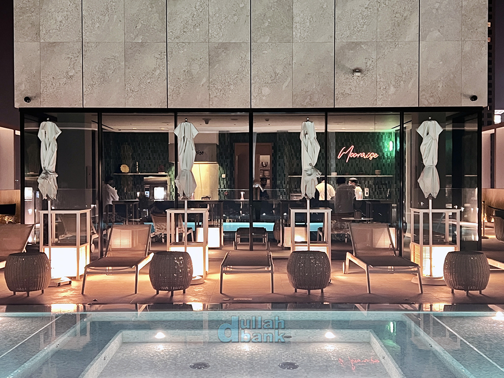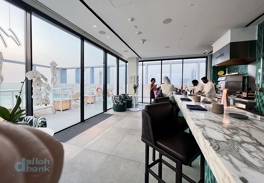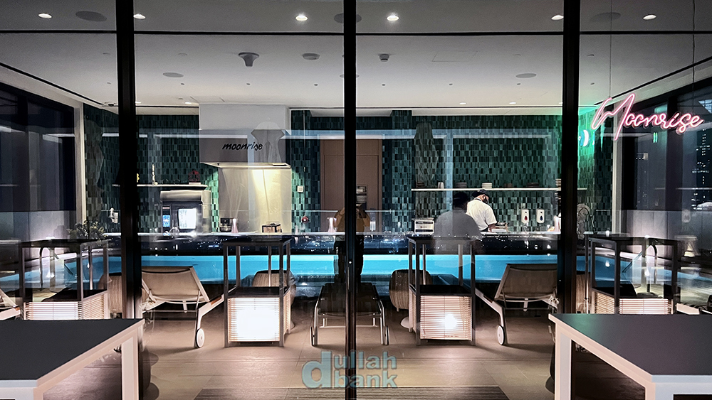 주방을 통해 셰이크 자이드 로드의 스카이 라인을 같이 즐길 수 있는 호세키와 달리, 문라이즈는 배경은 사이드와 뒤에 있고 오직 주방만을 바라보도록 되어 있습니다. ㄷ자형 바인 호세키와 달리 문라이즈는 일자형 바.