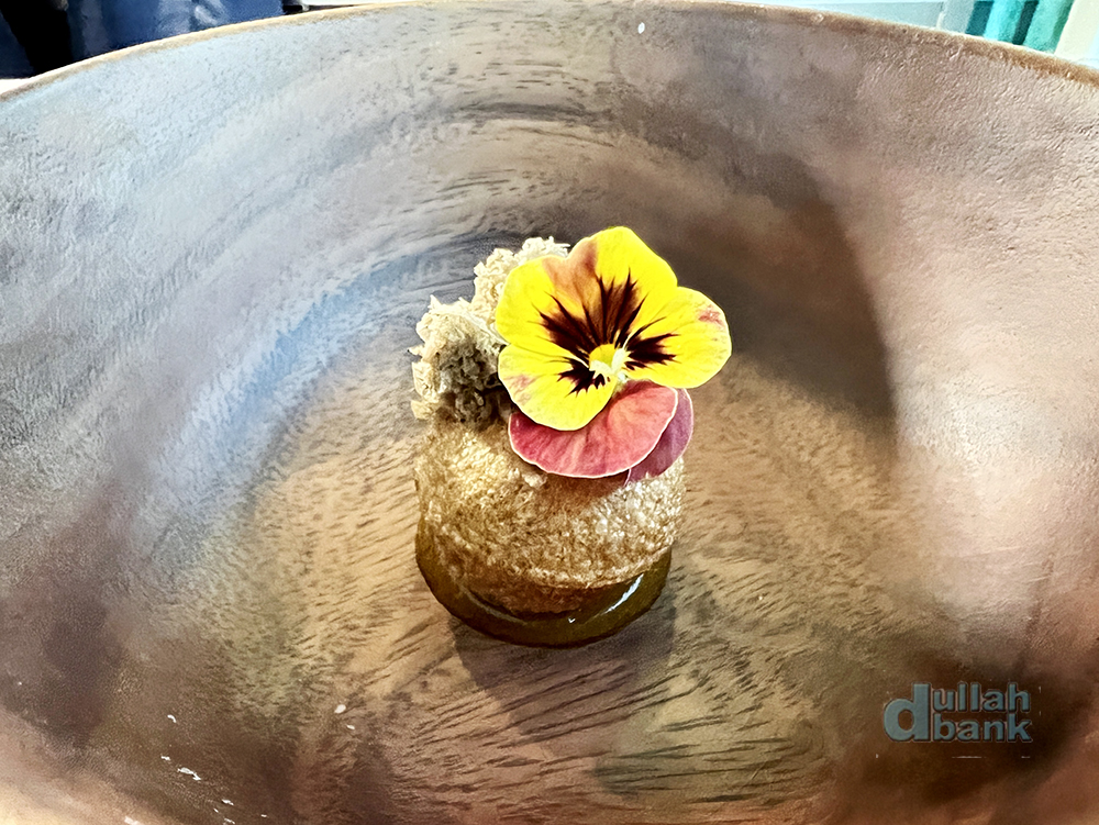 푸아그라, 대추야자, 사프론과 파인애플 츄트니, 시촨 칠리 오일로 만든 푸아그라 푸리는 한 입에 먹을 것을 권장하는데, 매콤한 뒷맛이 인상적이었습니다.