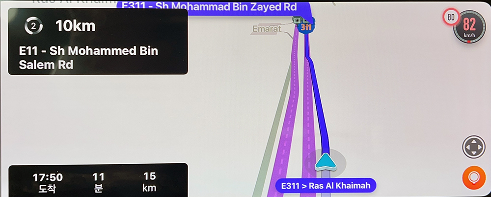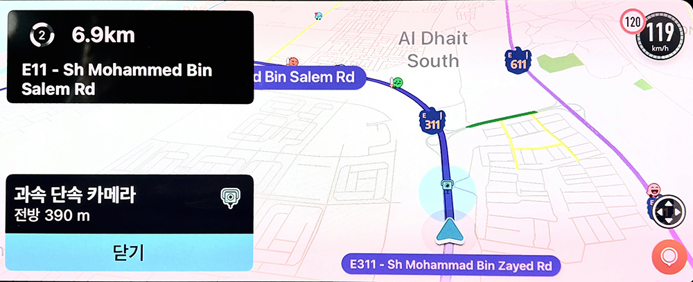 과속 단속 카메라는 맵 상에 위치를 표시해주고, 구간 단속 지역에 진입했을 경우 지역에 진입했음을 음성으로 알려주니 운전하는데 많은 도움이 됩니다. UAE의 교통 법칙금은 대체로 쎈데다, 상황에 따라서는 압류도 당할 수 있으니 조심해야죠.
