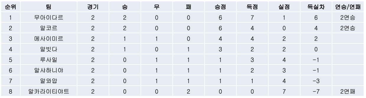 2) 개막전에서 0대3 승리를 거뒀던 알코르는 알빗다와의 경기에서 0대1로 승리하며 2연승을 달렸습니다.