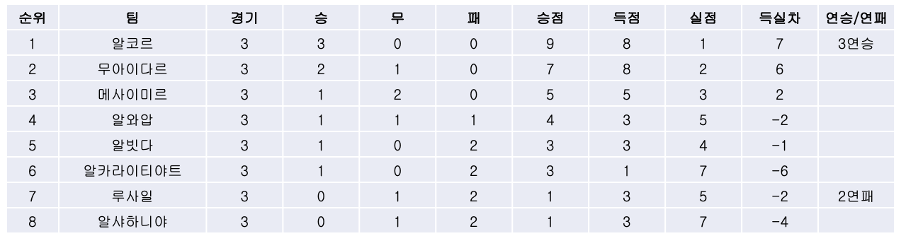 1) 리그 2연승을 달리고 있는 알코르는 알샤하니야와의 경기에서 4대1 대승을 거두고 리그 3연승을 달리며 3라운드만에 단독 선두로 올라섰습니다.