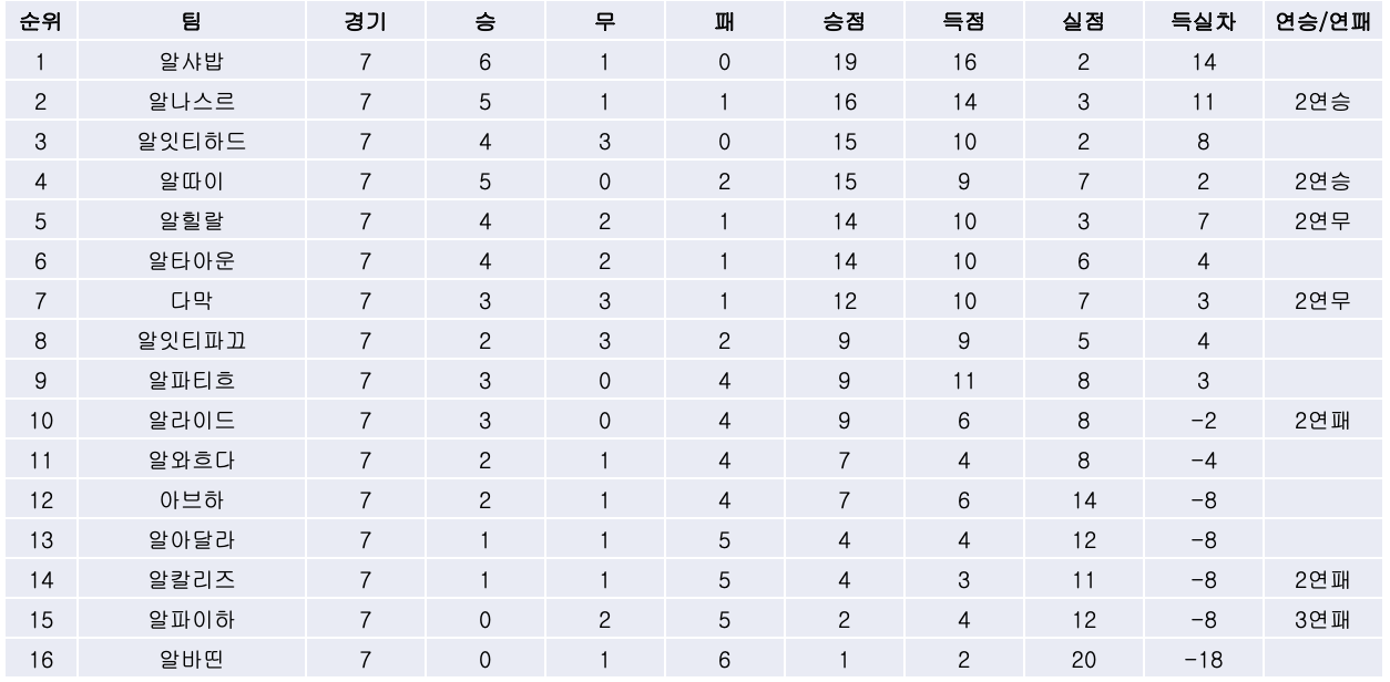 2. 리그 순위