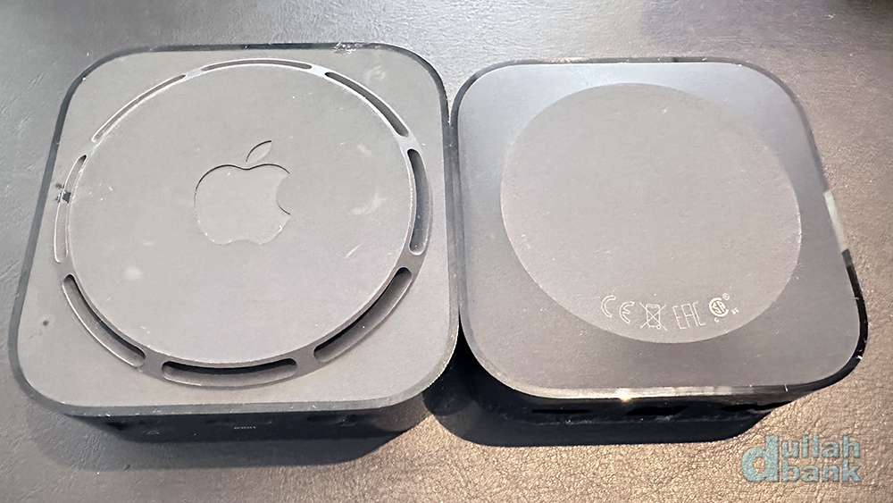 그렇게 크기를 줄일 수 있었던 이유는 1, 2세대 모델 하단부에 있던 팬을 날렸기 때문입니다. 밑바닥에 큼지막하게 자리잡고 있던 공기 환풍구를 완전히 날리고, 사과 로고까지 같이 날렸네요. 본체 위에 사과 로고만 있고, 바닥에 없는 것이 3세대 모델의 특징이 되겠습니다.