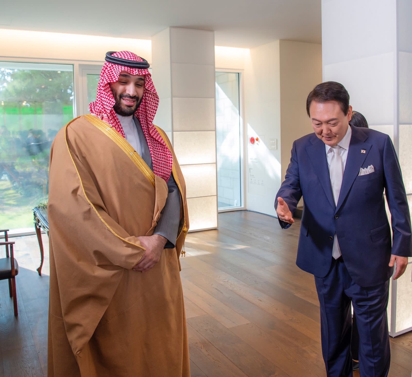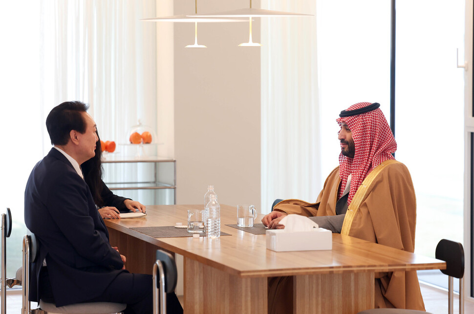 한국에 도착한 무함마드 왕세자는 17일 용산 대통령실이 아닌 한남동 대통령 관저에서 윤석열 대통령을 만났습니다. 그는 한남동 대통령 관저로 이사한지 10일만에 찾은 첫 VIP 손님이라죠. 무함마드 빈 살만 왕세자는 공교롭게도 2019년 첫 방문에 이어 3년 반만에 한국을 다시 찾아 청와대와 한남동 대통령 관저를 다 경험한 첫번째 외국 VIP가 되었습니다.