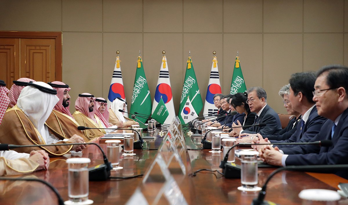 몇 달 사이에 모든 분야에 걸쳐 전세계 어디에 내놔도 부끄럽게 만들어 버린 집단이 무함마드 빈 살만 왕세자의 방한길에 보여준 모습은 공항에서 상대를 날리는 것도 안날리는 것도 아닌 애매한 영접에서부터 어설픔 그 자체였습니다. 전임 정권 때와도 확연히 비교되고, 심지어 그가 바로 다음날 방문한 태국보다도 못한 공항 영접이라니....