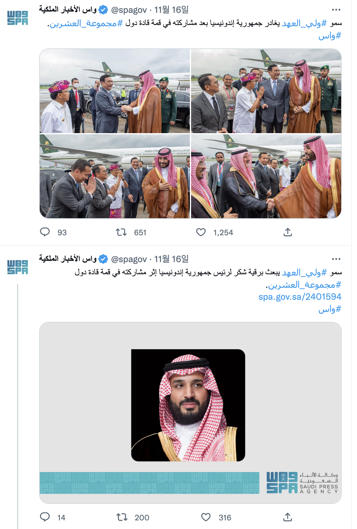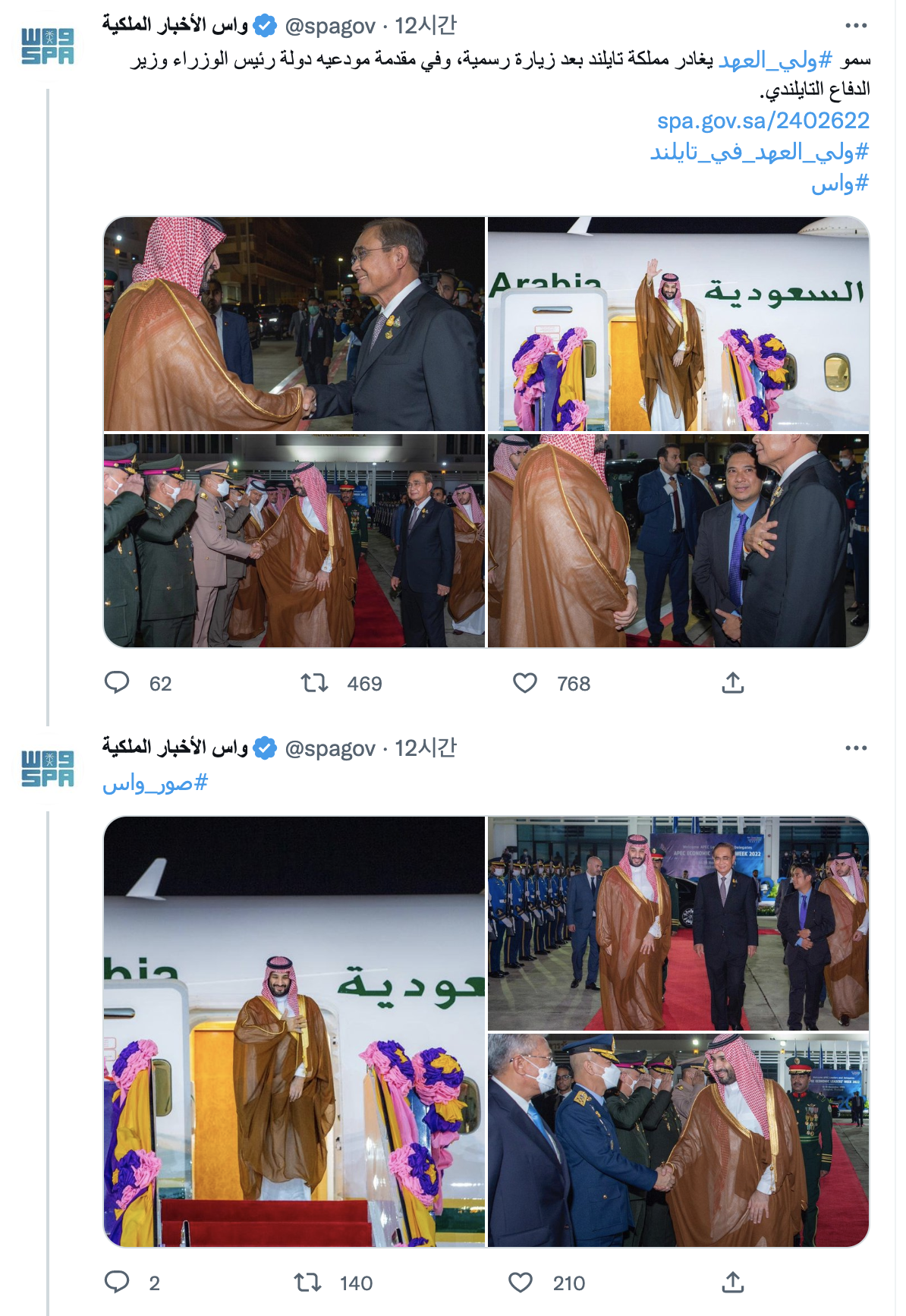 덧, 입국 영접이 얼마나 허접했었는지를 위에서 비교 설명해드렸는데, 출국 영접은 더 허접했던 것으로 보입니다. 사우디 관영통신 공식 SNS에 소개된 방한 소식은 재벌 총수를 만났다와 사진 하나 없이 대통령에게 감사 전보를 보냈다...가 전부였으니까요.