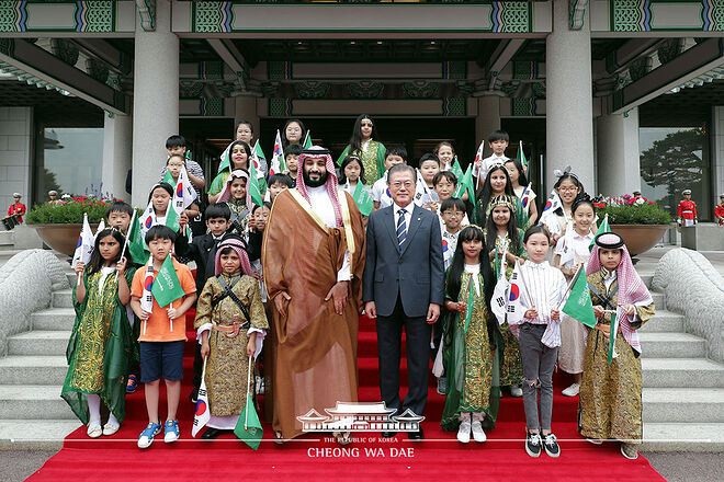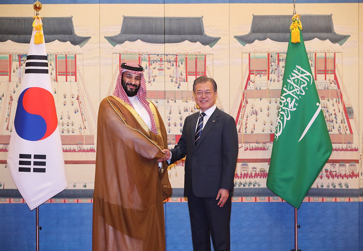 무함마드 빈 살만 왕제자 역시 무함마드 빈 자이드 알나흐얀 UAE 대통령과 마찬가지로 바이든 미국 대통령이 사우디를 방문하기 반년 전인 올해 1월 18일 문재인 전 대통령이 리야드에 방문했을 때는 급도 안되는 인사를 내보냈던 바이든 미 대통령 방문 때와는 확연히 다른 모습으로 문 전 대통령을 맞이했었습니다.