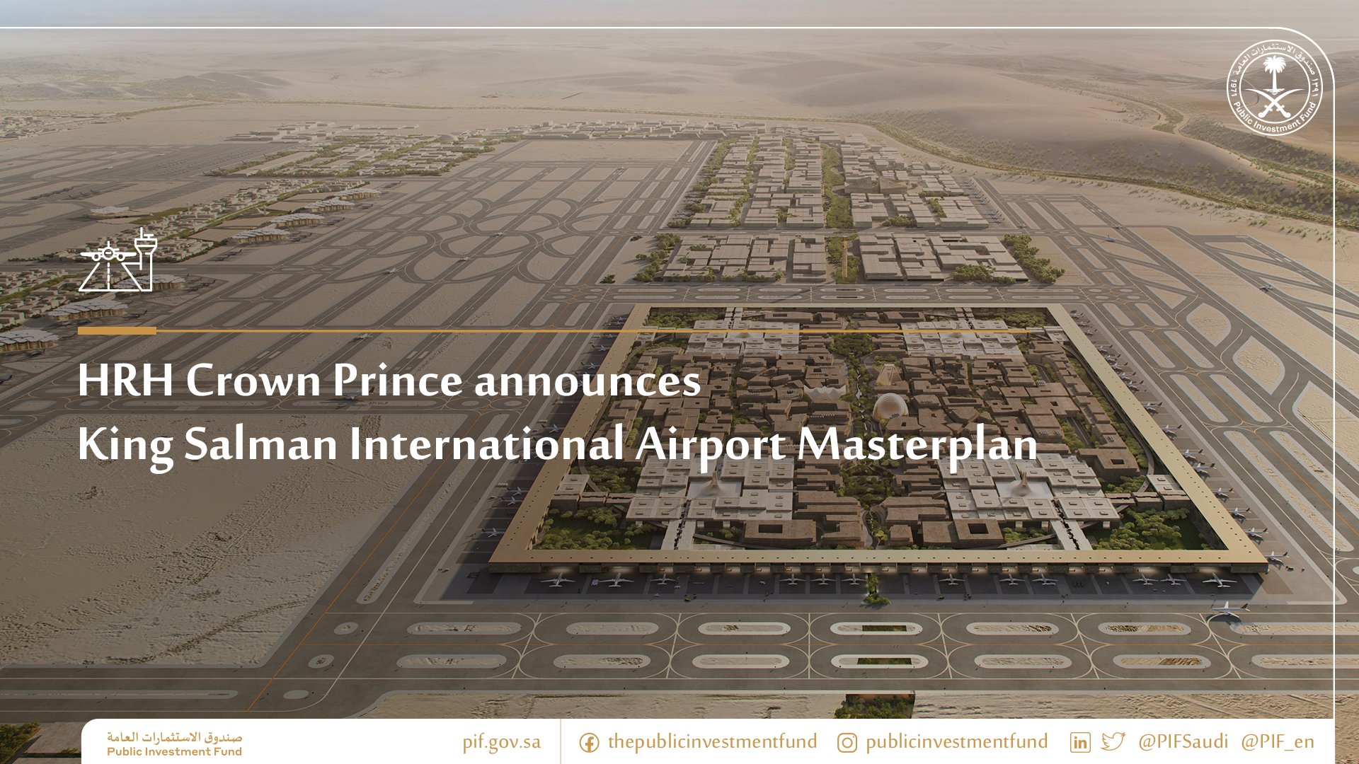 사우디 국부펀드인 PIF (Public Investment Fund)가 짓게 될 킹 살만 국제공항은 2030년까지 연간 1억 2천만명의 관광객, 2050년까지 1억 8500만명의 여행객과 350만톤의 카고 처리를 목표로 하고 있습니다.