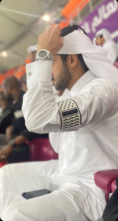 카타르 당국 관계자들이 착용했던 완장은 팔레스타인인들이 머리에 쓰는 쿠피야를 형상화한 완장이었습니다.