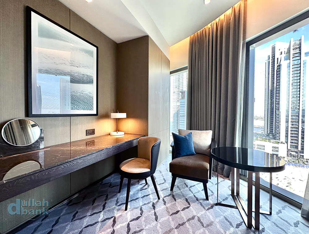 방이 이렇게 구성되어 있으니 4단계 업그레이드가 되어 12층에서 가장 넓은 방을 받았습니다. 어드레스 티어가 높은 것도 아닌데 스위트로 업그레이드 받은 건 어드레스 다운타운 재개장 첫 날 첫 투숙객 기념, 두바이 어드레스 비치 리조트에서 체크인하는데 오래 기다리게 해서 미안하다며 업그레이드 받은 이후 세번째군요. 어드레스 다운타운은 첫 투숙객이라고 체크아웃할 때 자신들이 계산하겠다며 공짜로 묵었던 행운도 있었죠. (보완점에 대해 디테일하게 피드백을 해준 댓가였겠지만요.)