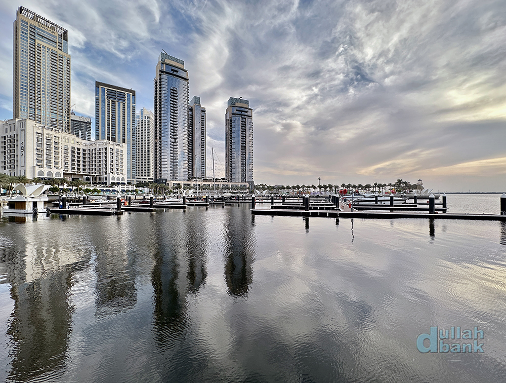 호텔 주변의 두바이 크릭 하버 일대 산보하기