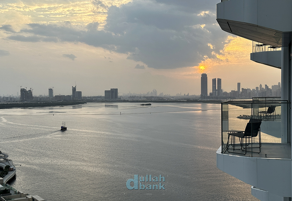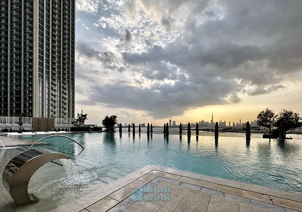 왼편으로는 무함마드 빈 라쉬드 시티 내 소브하 하트랜드 (Sobha Hartland)의 스카이 라인이,