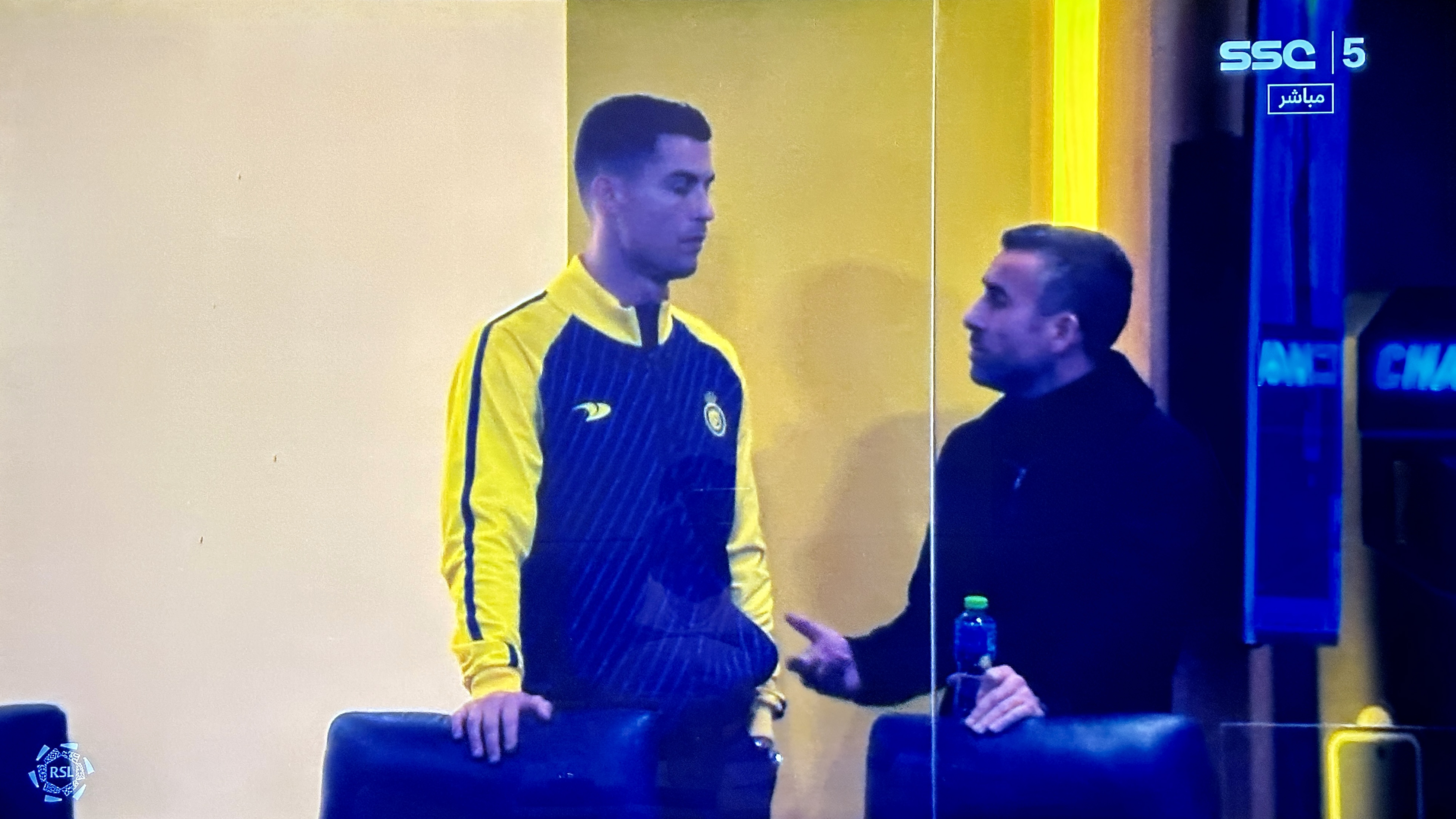 5) 성대한 공개 환영식을 받은 크리스티아누 호날두는 새 소속팀에서의 첫 경기를 관중석에서 지켜볼 수 밖에 없었습니다. 알나스르가 외국인 쿼터를 풀로 채운 상태라 등록이 안되어 있고, 등록이 되더라도 맨유 시절에 영국에서 받은 두 경기 출장정지 징계가 사우디 리그로 이관되기에 어차피 뛸 수 없는 상황입니다.
