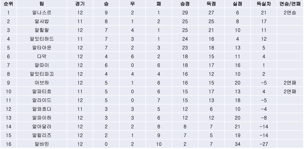 2. 리그 순위