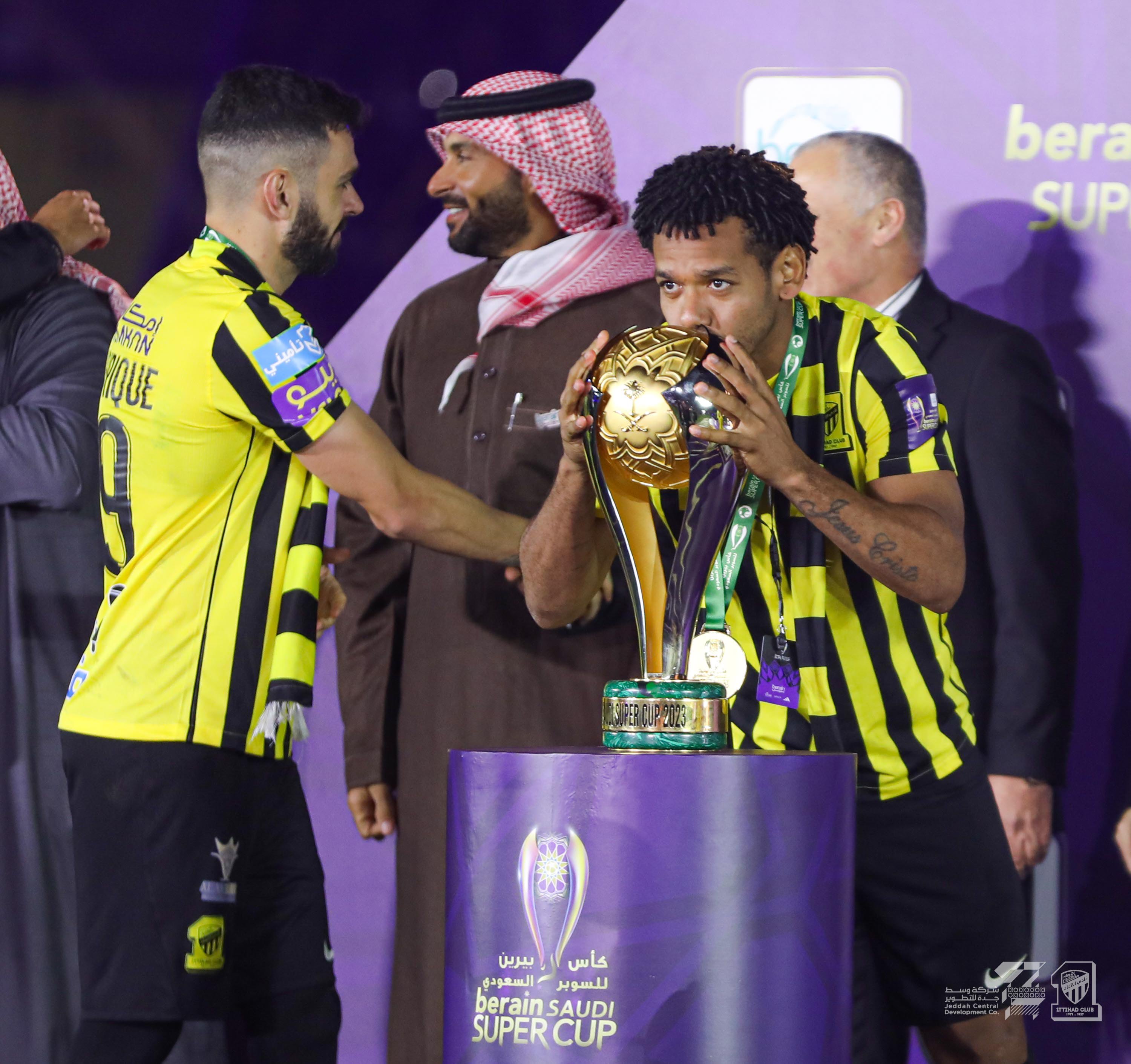 4) 슈퍼컵 첫 우승에 도전하는 알잇티하드와 알파이하의 경기에서는 압둘라작 함달라의 멀티골을 앞세운 알잇티하드가 알파이하를 2대0으로 꺾고 슈퍼컵 삼수 끝에 첫 우승이자, 2018년 국왕컵 우승 이후 5년 만에 첫 공식 대회 우승을 차지했습니다. 전반 막판 얻은 페널티킥을 압둘라흐만 알아부드가 실축하면서 분위기가 바뀔 수도 있었지만, 후반 이른 시간 압둘라작 함달라의 골이 터지면서 여유있게 경기를 운용할 수 있었습니다. 알파이하는 리드 당하고 있던 전반 중반 VAR 끝에 압둘라흐만 알사프리가 과격한 태클로 인해 다이렉트 퇴장을 당하면서 생긴 수적 열세를 극복하지 못하고 준우승에 만족해야만 했습니다.