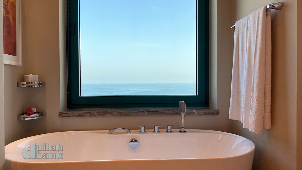 욕조에서는 창 밖으로 바다를 볼 수 있습니다.