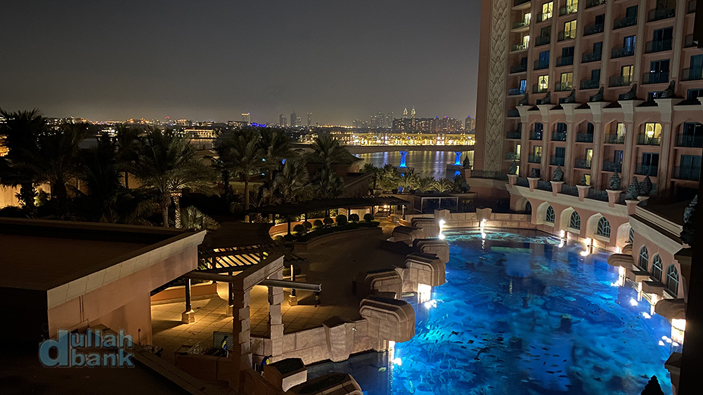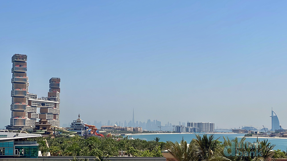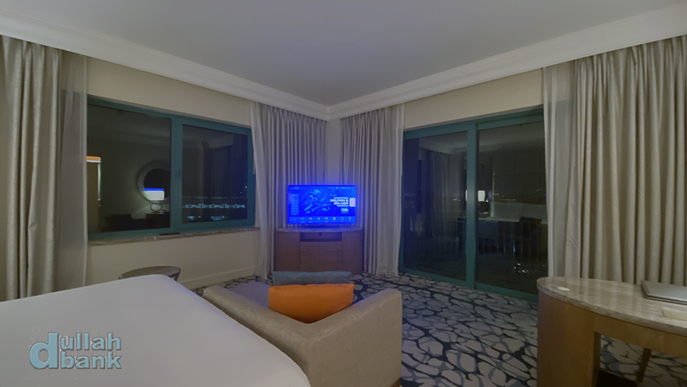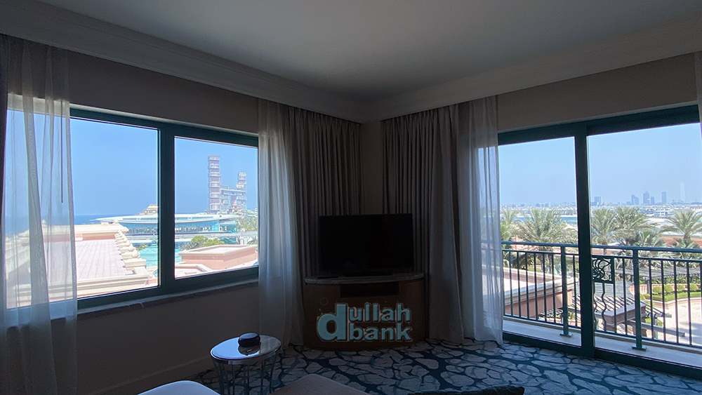 옆쪽 창으로는 팜 모노레일 정거장과 투숙 당시 공사중이던 아틀란티스 더 로열, 그 너머 부르즈 알아랍과 날씨가 좋으면 부르즈 칼리파를 중심으로 한 스카이 라인이 눈 앞에 펼쳐지고...
