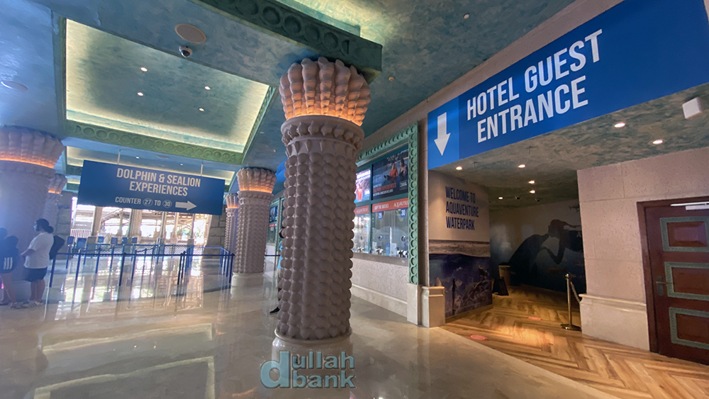 이제는 아틀란티스 더 팜과 더 로얄 사이에 자리잡게 된 아쿠아벤처 워터파크는 지난해 세계에서 가장 많은 워터 슬라이드를 가진 워터파크로 기네스 기록에 이름을 올린 바 있습니다. 일반 이용객들은 매표소를 이용해 입장하지만...