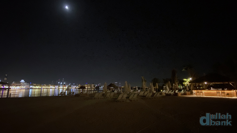 맞은편 더 포인테 앞에서 펼쳐지는 팜 파운틴쇼를 멀찌감치 관망할 수 있습니다.