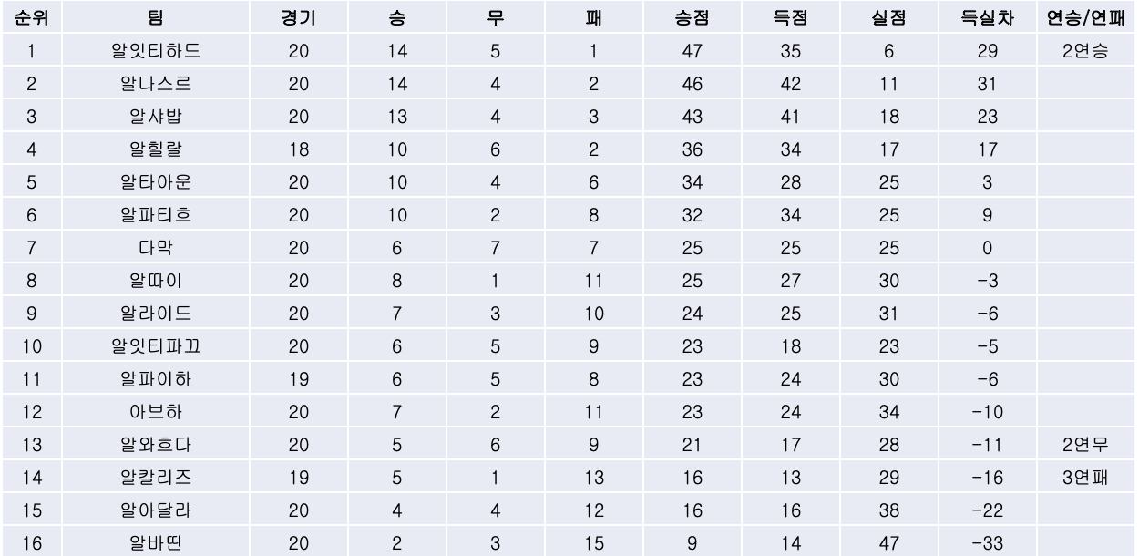 1)  승점 2점차로 리그 12위와 13위를 차지하고 있는 알잇티파끄와 알와흐다의 경기는 로빈 꾸아이손의 동점골로 승점 1점씩을 나눠가지며 순위를 그대로 유지했습니다.
