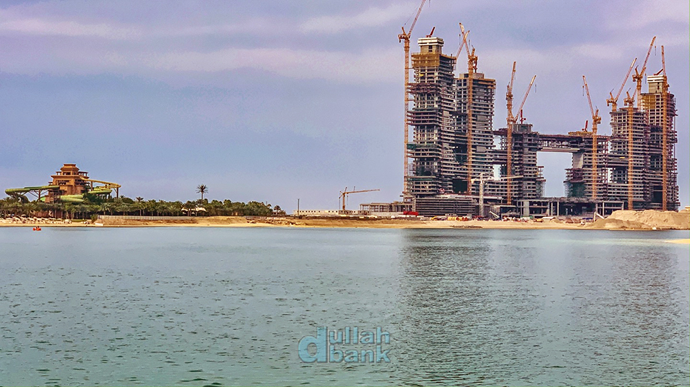 공사가 진행됨에 따라 크레인이 하나둘씩 빠지면서 이 건물은 아틀란티스 더 팜보다 더 눈에 잘 띄는 건물이 되었습니다. 아틀란티스 더 팜의 높이는 93m인 반면, 아틀란티스 더 로열은 거의 두 배인 185m인데다 훨씬 덩치가 크니까요.