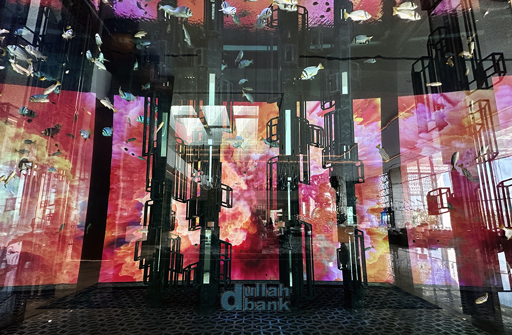 아틀란티스 더 팜의 로비에서 볼 수 있는 아쿠아리움의 크기에 비하면 세발의 피도 안되는 작은 아쿠아리움이지만, LED 스크린을 배경으로 사용하는 아쿠아리움은 처음이라고 하네요.