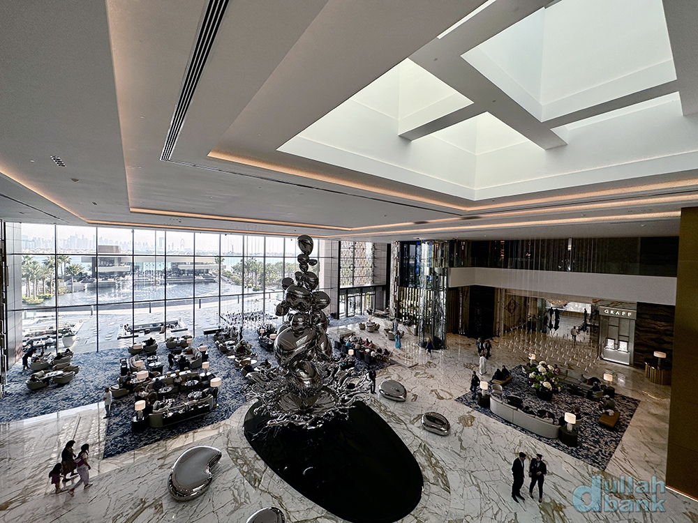 그리고 들어선 로비는 아틀란티스 더 팜과 확실히 달랐습니다. 아틀란티스 컨셉의 기이한 조형물과 뭔가 웅장해지는 듯한 아틀란티스 더 팜과 달리 아틀란티스 더 로열의 로비는 그런 컨셉 따위는 거의 없어진 모던한 실내공간과 더불어 건물 규모에 비해선 되려 작게 느껴집니다. 물론 정면에 설치된 통유리창이 개방감을 주고, 통유리창과 천장을 활용해 자연 채광을 적절히 활용한다는 점은 좋았지만요.
