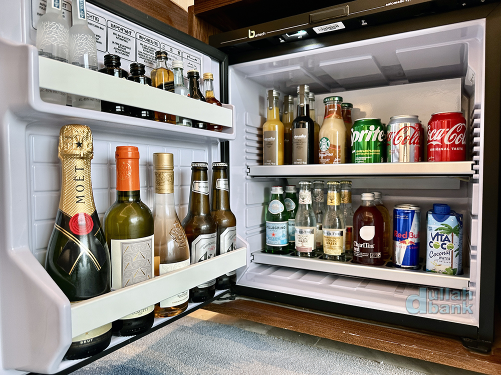 TV 밑 수납장에는 투숙객들의 주머니를 소소하게 털기 위한 미니바가 있습니다.