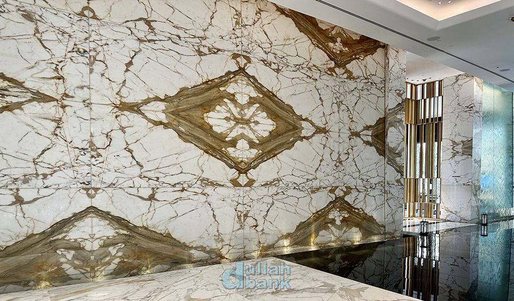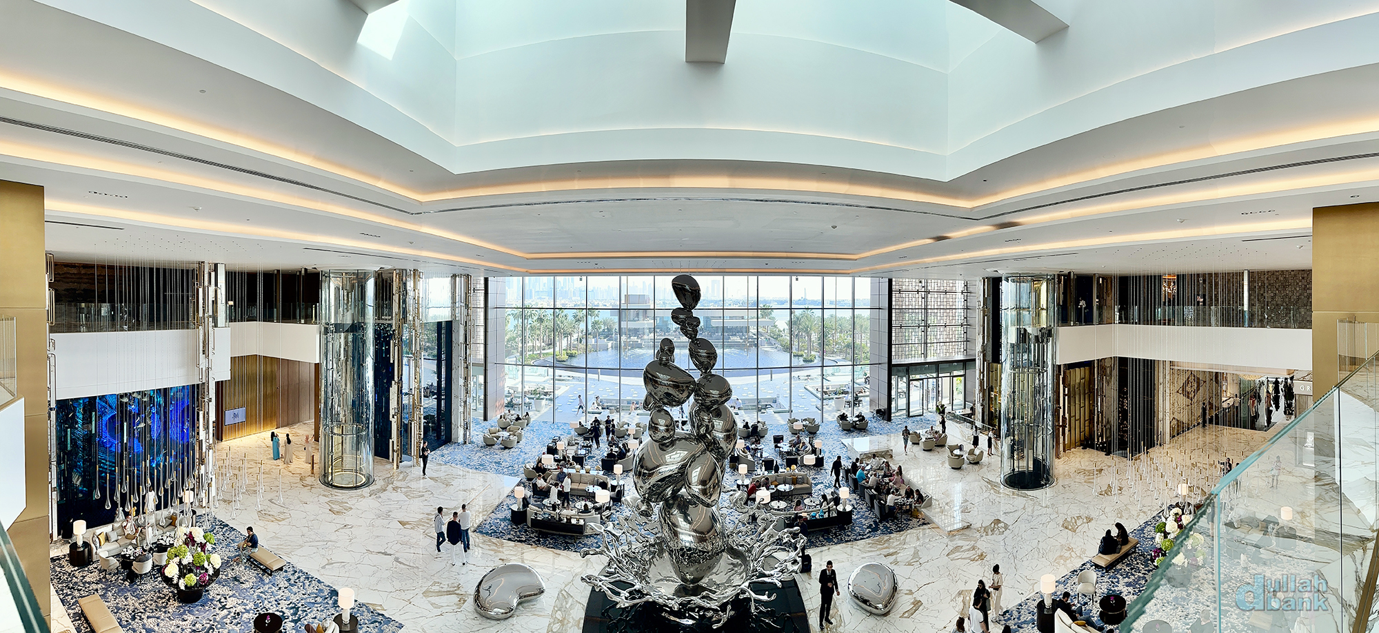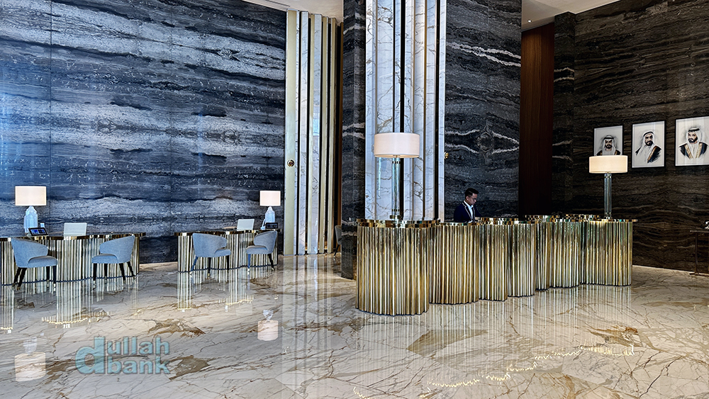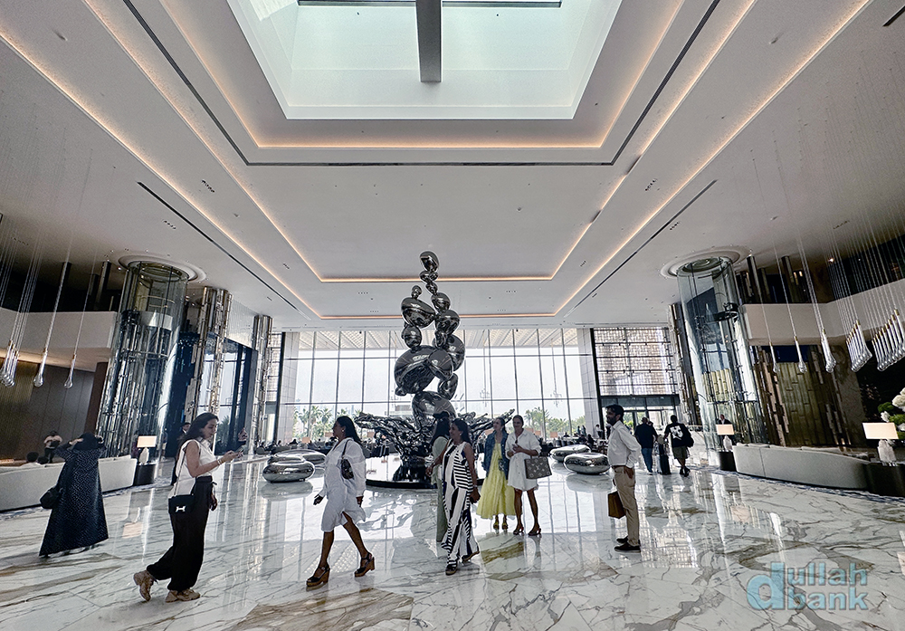 그리고 들어선 로비는 아틀란티스 더 팜과 확실히 달랐습니다. 아틀란티스 컨셉의 기이한 조형물과 뭔가 웅장해지는 듯한 아틀란티스 더 팜과 달리 아틀란티스 더 로열의 로비는 그런 컨셉 따위는 거의 없어진 모던한 실내공간과 더불어 건물 규모에 비해선 되려 작게 느껴집니다. 물론 정면에 설치된 통유리창이 개방감을 주고, 통유리창과 천장을 활용해 자연 채광을 적절히 활용한다는 점은 좋았지만요.