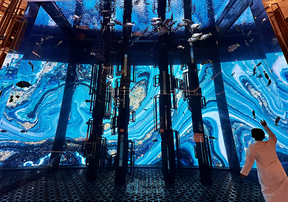 아틀란티스 더 팜의 로비에서 볼 수 있는 아쿠아리움의 크기에 비하면 세발의 피도 안되는 작은 아쿠아리움이지만, LED 스크린을 배경으로 사용하는 아쿠아리움은 처음이라고 하네요.