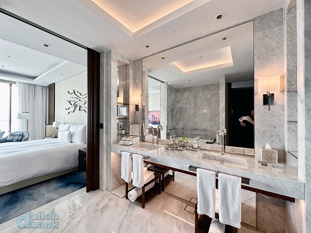 아틀란티스 더 로열의 객실은 아틀란티스 더 팜 객실 보다 월등히 낫습니다. 기본적으로 가장 작은 방의 크기가 더 로열이 10m2 더 넓고, 공용 공간 및 기타 즐길 공간에 힘을 준 대신 객실은 명성과 숙박비에 걸맞지 않게... 전체적으로 좋게 말하면 올드하고, 나쁘게 말하면 구리구리한 더 팜에 비해 더 로열은 디자인부터 어메니티까지 모든 면에서 몇 배 낫습니다... (그만큼 지갑도 몇 배 앏아집니다만;;;;)