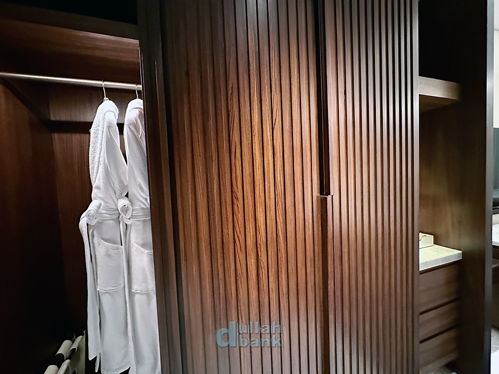 한쪽엔 가운과 아바야, 칸두라 같은 긴 옷을 접지 않고 걸 수 있는 긴 옷장이,