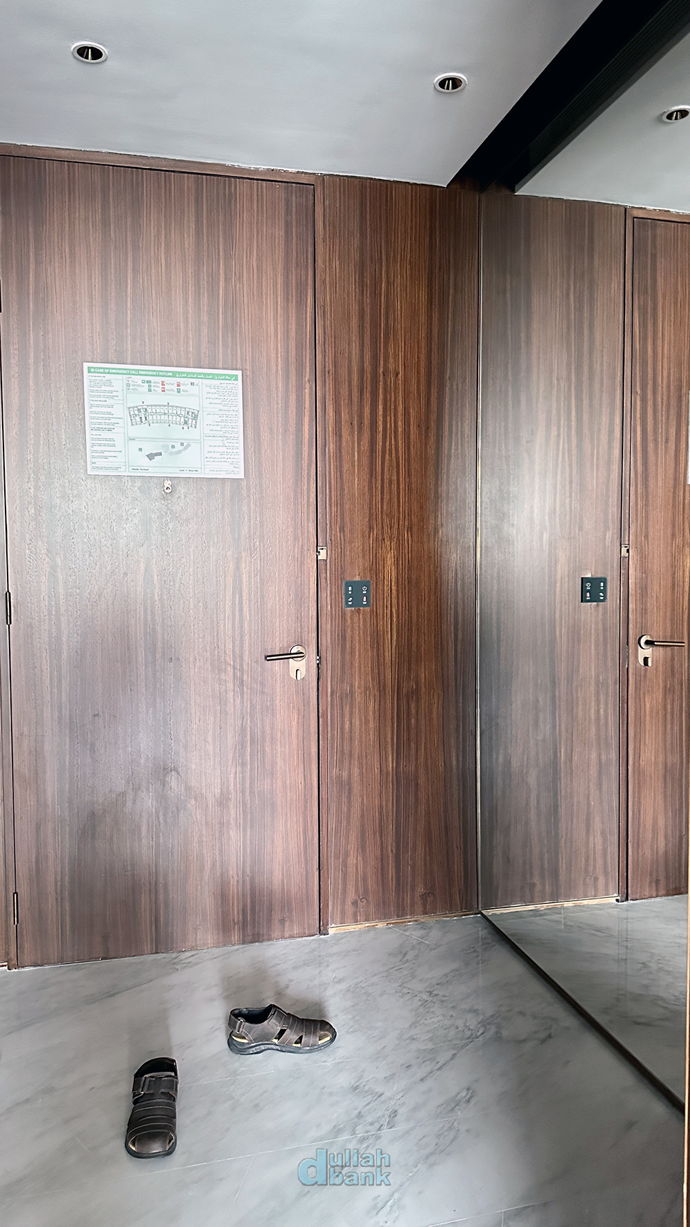 신발장에는 슬리퍼와 쪼리가 각각 두 쌍씩 구비되어 있습니다. 슬리퍼는 같은 색, 쪼리는 각기 다른 색. 두바이 호텔들이 아무리 풀과 바다를 끼고 있어도 쪼리 인심은 박한 편인데, 서로 다른 색상의 쪼리를 구비해둔 것은 맘에 들었습니다.
