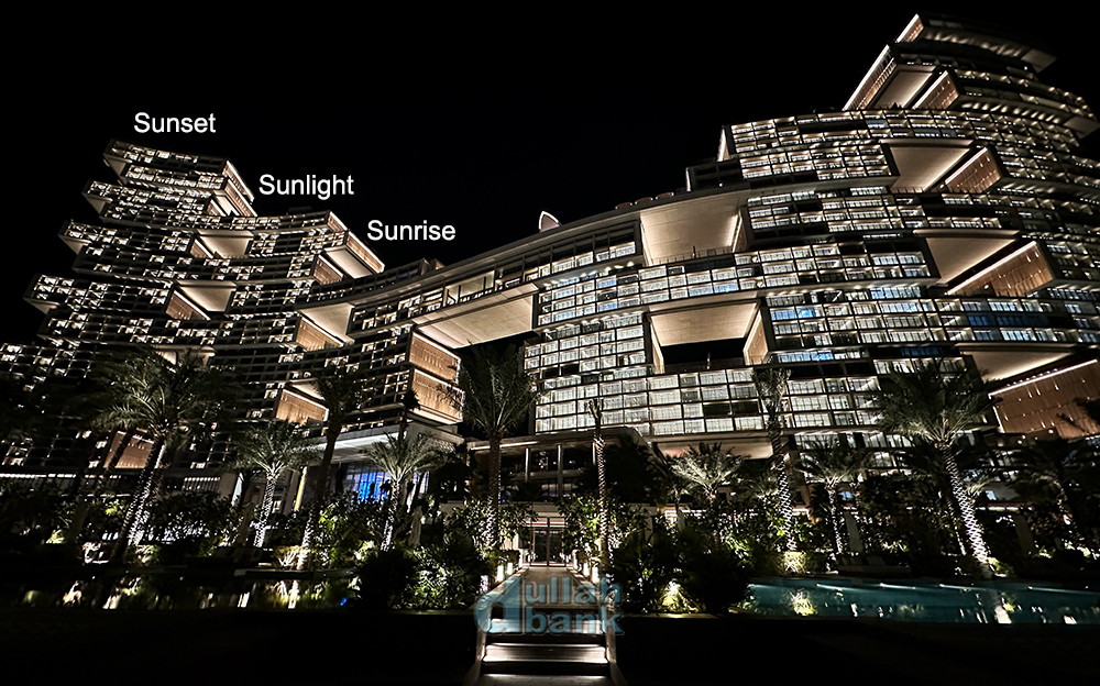 지난 편에서 설명드렸듯 6개동 중 팜 주메이라에서 볼 때 왼쪽 3개동이 호텔 건물인데, 각 타워마다 고유의 이름을 갖고 있습니다. 가장 낮으면서 일출을 가장 먼저 맞이하는 선라이즈 타워, 해의 움직임에 따라 중간에 위치한 선라이트 타워, 그리고 가장 높은 건물이자 일몰을 가장 먼저 맞이하게 되는 선셋 타워가 바로 각 동의 이름이죠. 이번에 묵게될 곳은 바로 선라이트 타워입니다.