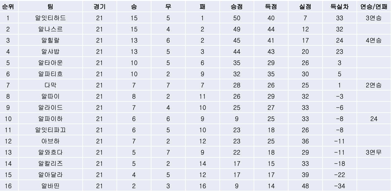3. 리그 순위