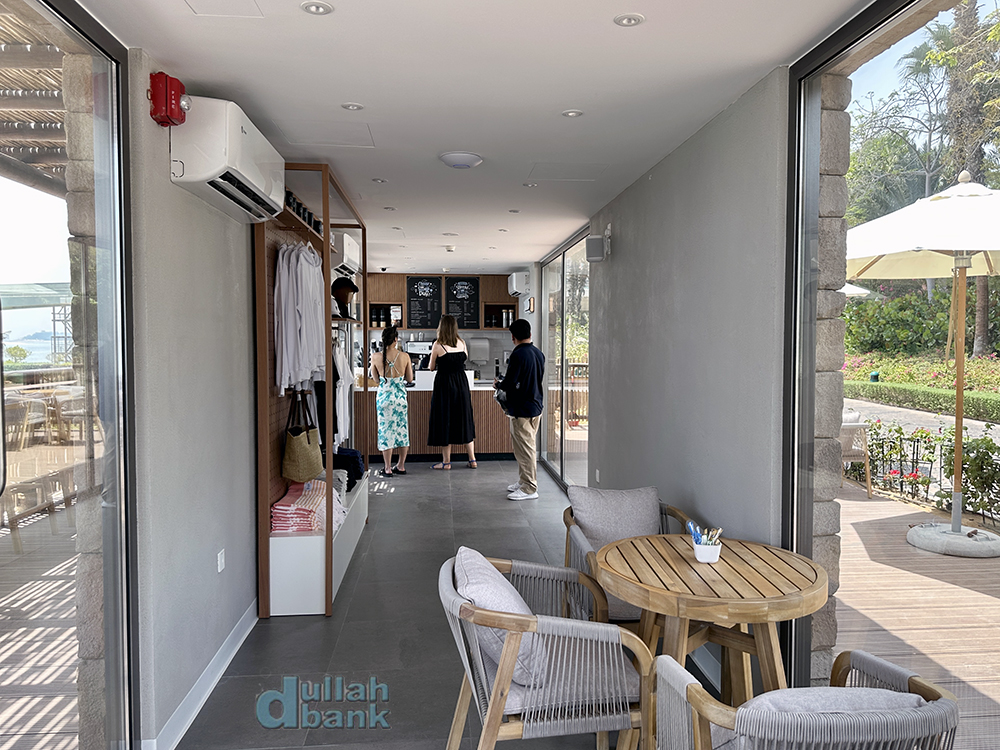 해변에서 음료를 마실 수 있는 공간이 있고,