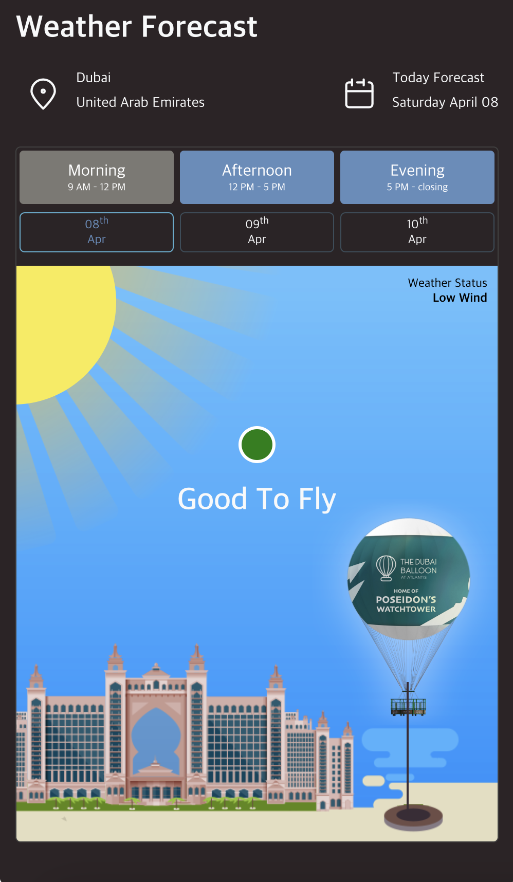 매표소 직원의 말에 의하면 날씨의 영향을 많이 받다 보니 두바이 벌룬을 이용하기 가장 좋은 계절은 UAE 내 여느 야외 시설과 달리 여름이라고 합니다. 바람이 전혀 불지 않는 계절이다 보니 운항이 취소될 확률도 거의 없고, 날씨가 뜨거운 대신 동절기와 달리 밤 11시까지 야간개장을 할 계획이라고 하니까요. 이번에 경험한 것처럼 운항 일정이 그야말로 복불복인 동절기의 경우 상대적으로 오전 시간대를 권장하고 있습니다. 실제로 일주일 동안 지켜보니 위에서 언급했던 것처럼 그나마 오전 시간대 (9시~12시)에만 운항할 정도로 말이죠.