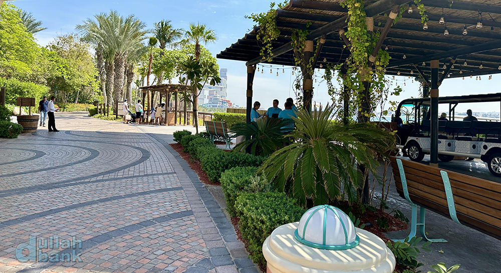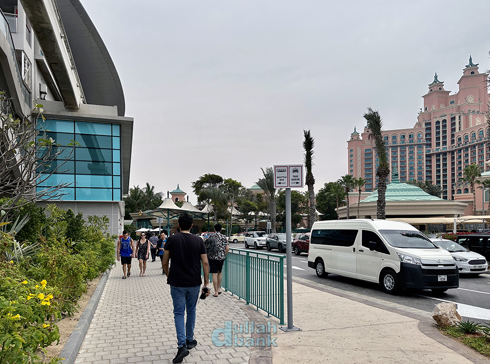 팜 모노레일 역에서 아쿠아벤처 워터파크와 식당가가 있는 길목에...