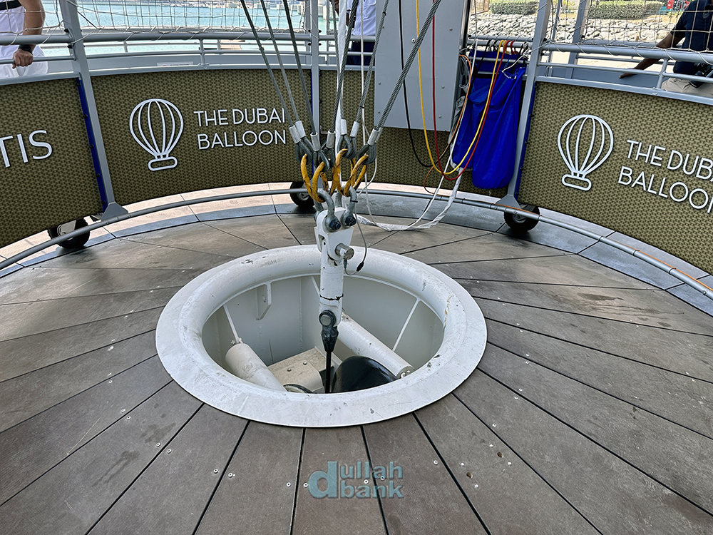 두바이 벌룬을 타고 팜 주메이라 상공으로 올라갑니다. 운항 시간은 1회당 총 10분 정도. 안전을 위해 이착륙 시에는 손잡이를 잡아야 하고, 운항 중 취식 및 흡연은 당연히 금지됩니다.