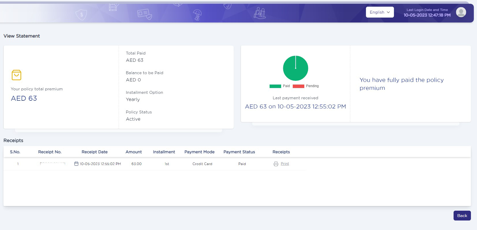 Statement 보기를 클릭하면 보험비 납부 내역을 확인할 수 있습니다.