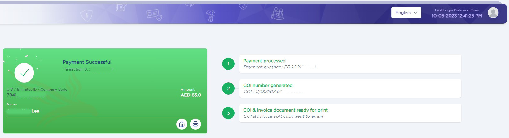 Policy Details 보기를 클릭하면 가입 정보와 더불어 보험증서를 출력할 수 있고,