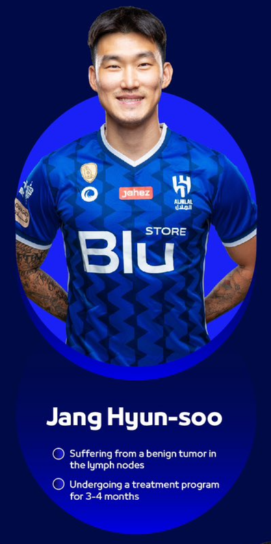 지난 3일 알힐랄에서 뛰고 있는 장현수가 구단 자체 메디컬 체크 중 림프절에 이상이 있음을 발견하여 사우디에서 가장 큰 병원 중 한 곳으로 보내 정밀 검사를 받을 것이며, 구단은 검사 결과에 따라 그의 치료를 지원할 것이라는 소식이 전해지면서, 알힐랄 서포터즈 사이에서는 #장현수_응원합니다 라는 해시태그까지 나오며 그의 빠른 쾌유를 비는 격려가 이어지기 시작했습니다.