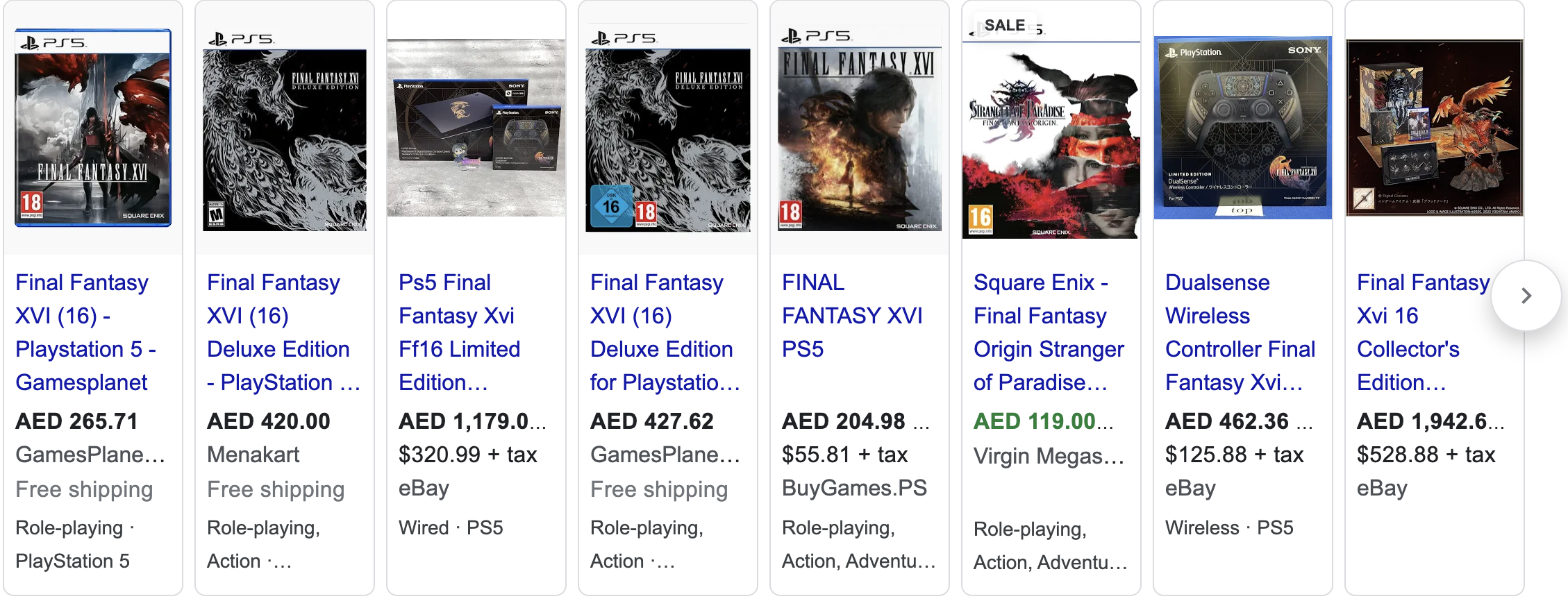 사우디보다 좀더 관대한 편인 UAE의 경우엔 전세계에서 보기 드문 21세 이상 등급을 신설해 파판16에 보다 더 성인용 게임인 사펑이나 GTA를 팔고 있음에도 불구하고 사우디처럼 공식 발표는 없었지만, 파판 16은 아예 판매금지작에 이름을 올려버린 것이죠.