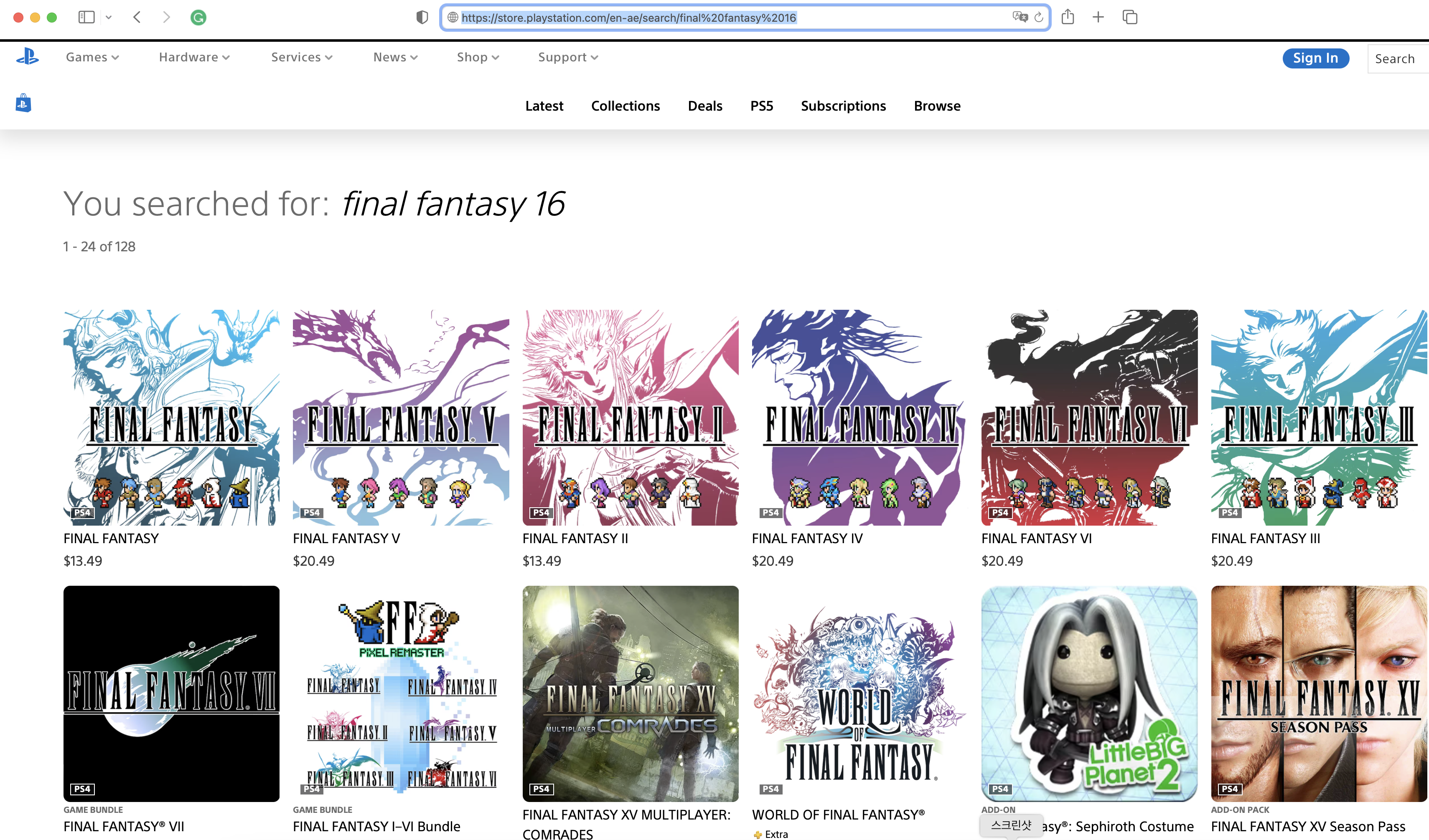 UAE에서 공식 발매가 안되는 파판 16을 구해서 끝을 볼 수 있었던 건 한국 플레이스테이션 스토어에서 다운로드판으로 예약구매했기 때문입니다. 지역제한이 걸려 있는 스트리밍 사이트들과는 달리 플레이스테이션이나 닌텐도 온라인 스토어 등은 한국 스토어 계정을 만들어 놓으면 해외에서도 그 계정을 통해 한국에서 팔리는 게임을 살 수 있거든요. 무엇보다 이 동네 매장이나 온라인 스토어를 통해 구입할 경우 한국어 자막 지원여부를 확인하기 쉽지 않은 반면, 한국어 지원 작품의 경우 한국 스토어에서 구매하면 한국어 지원은 확실하니까요.